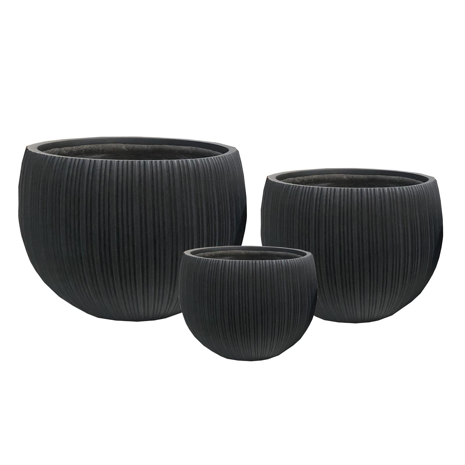 Γλάστρα Πήλινη Στρογγυλή “Antica” Σε Μαύρο Wash με Ρίγες L 48x48x37.5cm