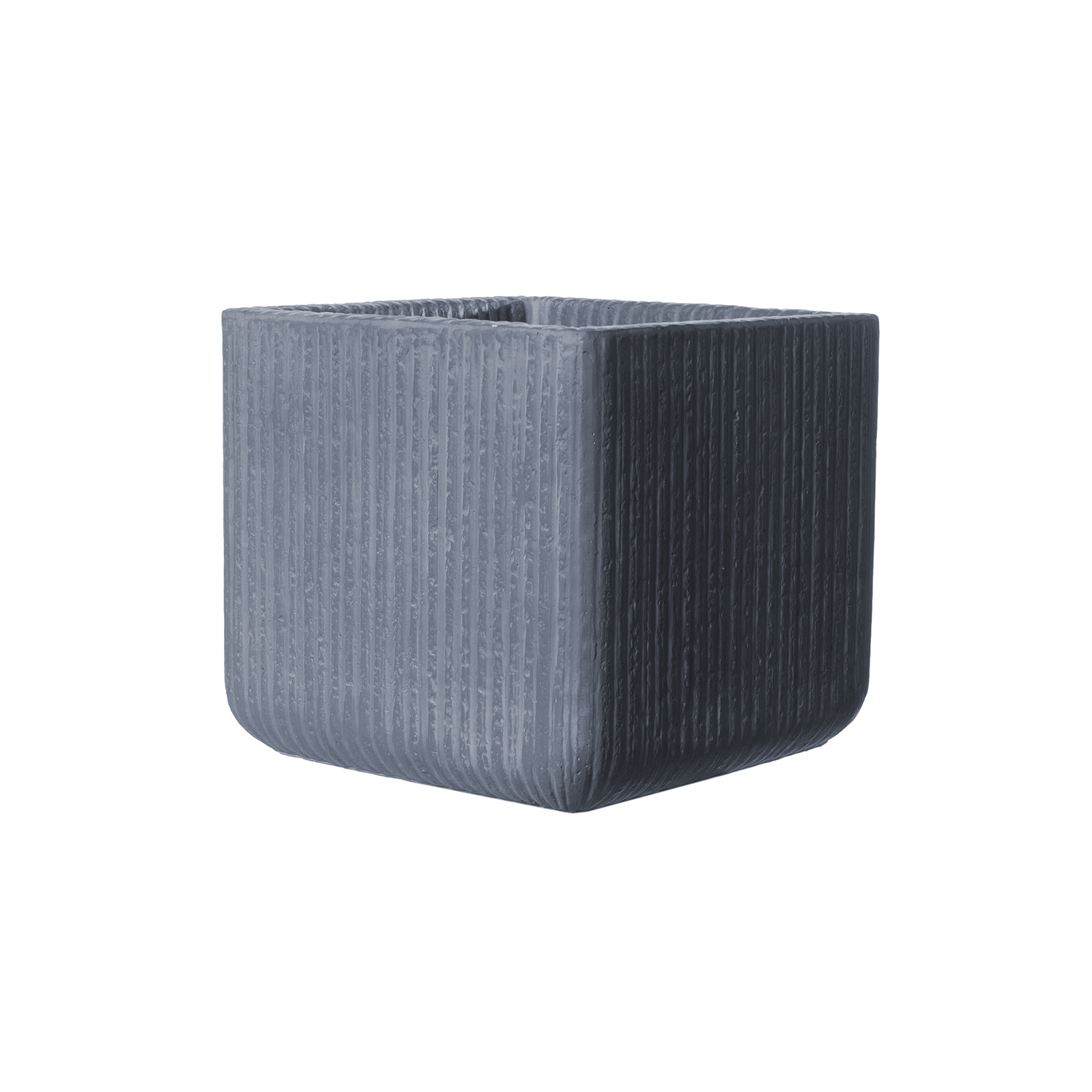 Γλάστρα Πήλινη Τετράγωνη “Stripe” Γκρι Σκούρο M 30x30x27 εκ.