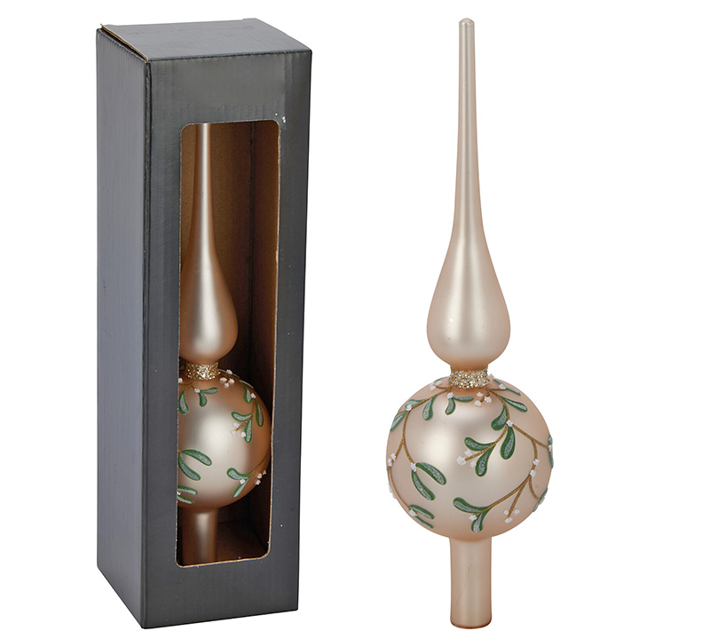 Γυάλ.κορυφή ματ ροζ με πράσινα φύλλα 8x30cm