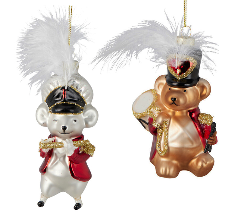 Γυάλινα στολίδια ποντικάκι & αρκουδάκι 11.5cm με στολή