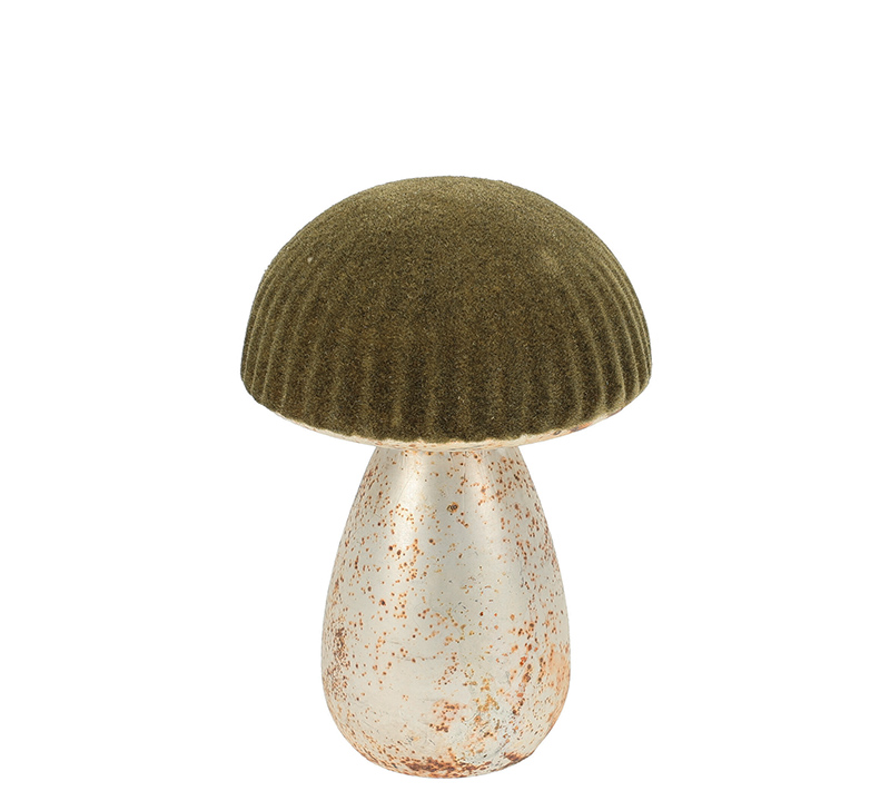 Γυάλινο διακοσμητικό μανιτάρι λαδί,13cm
