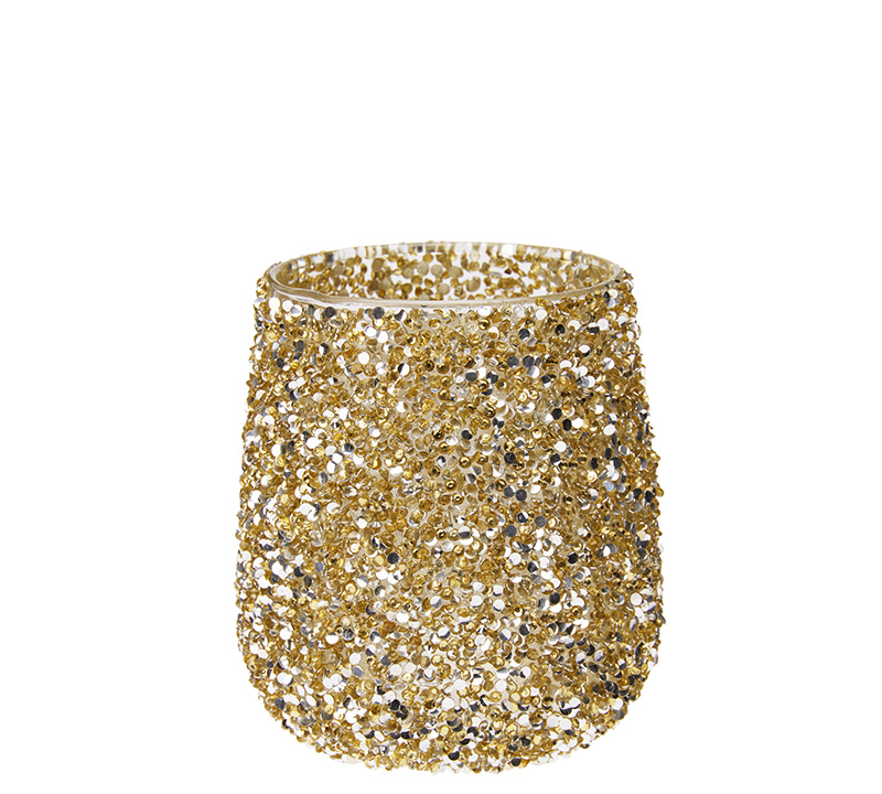 Γυάλινο φανάρι χρυσό στρας,10.5x11cm