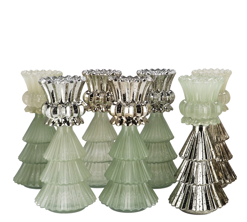 Γυάλινο ρεσώ σχ.έλατο μέντα-ασημί 28cm