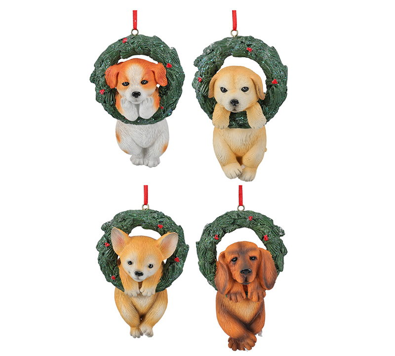Στολίδια σκυλάκια με στεφάνι σε 4 σχδ.,12cm