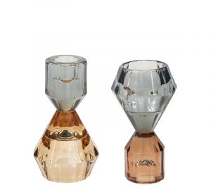 Γυάλινο 2πλο κηροπήγιο σε 2 χρωμ.,7x13cm