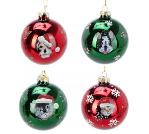 Γυάλινη μπάλλα “Cats & Dogs” σε 2 χρώματα 8cm