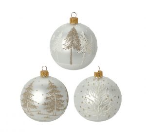 Γυάλινη χειροποίητη μπάλλα σχ.έλατο,περλέ 8cm