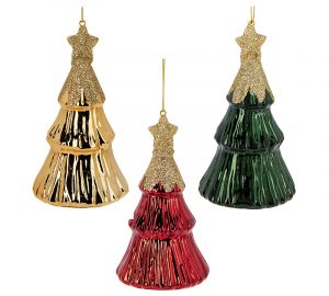 Γυάλινο στολίδι σχ.έλατο σε 3 χρ.,7x13cm