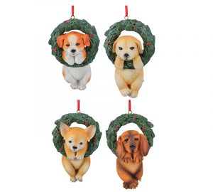 Στολίδια σκυλάκια με στεφάνι σε 4 σχδ.,12cm