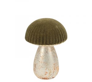 Γυάλινο διακοσμητικό μανιτάρι λαδί,13cm